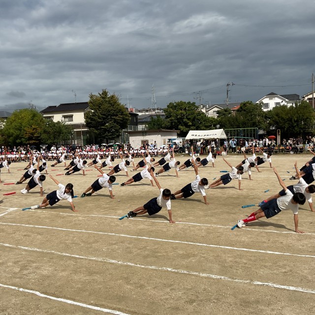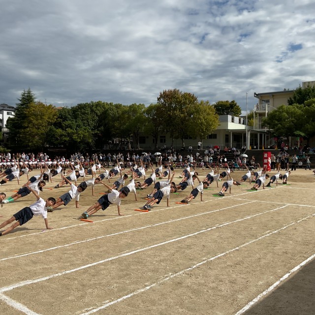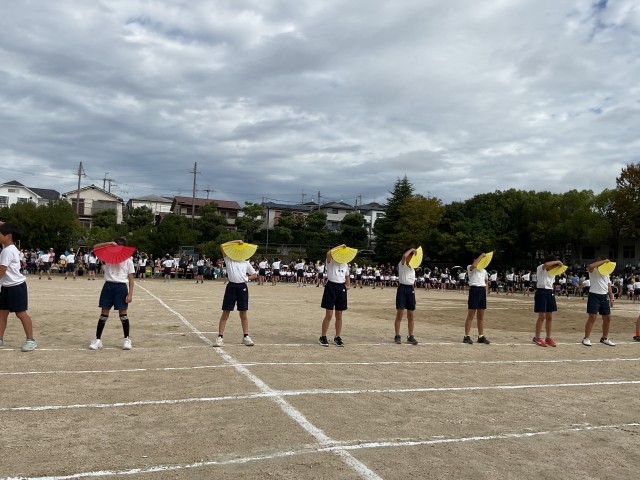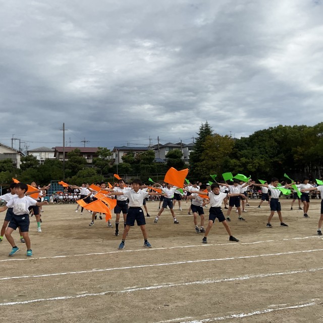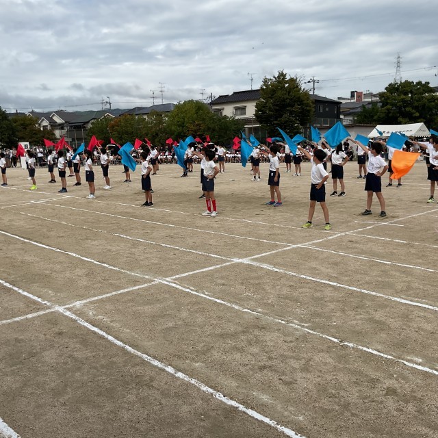運動場にフラッグの心地よい音が響き、とても引き締まった顔の5・6年生の皆さんの姿がとてもかっこよく、たくましく成長した姿が見られました。さすが高学年!圧巻の演技でした。素晴らしかったです。