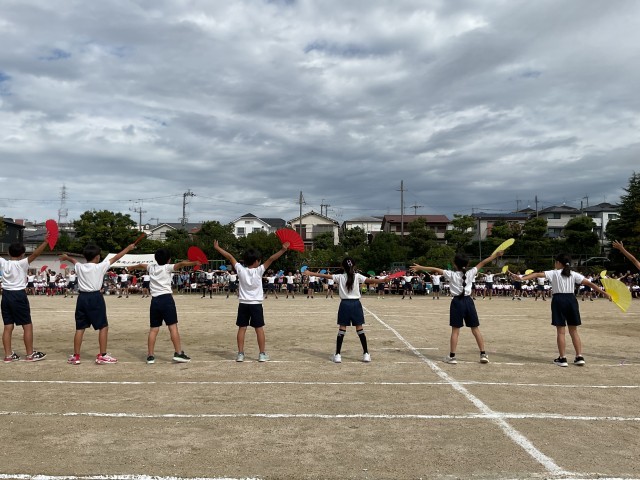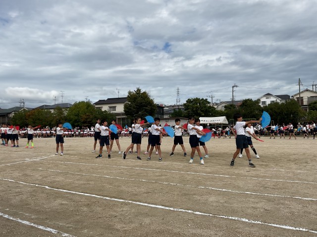 「はっ!」「はっ!」と子どもたちのかけ声高らかに、扇子を持った動きがとてもよく映えていました。各グループで自分たちが考えた動きを取り入れていたところもとても素敵でした。