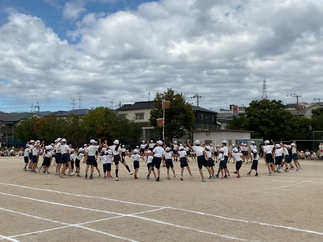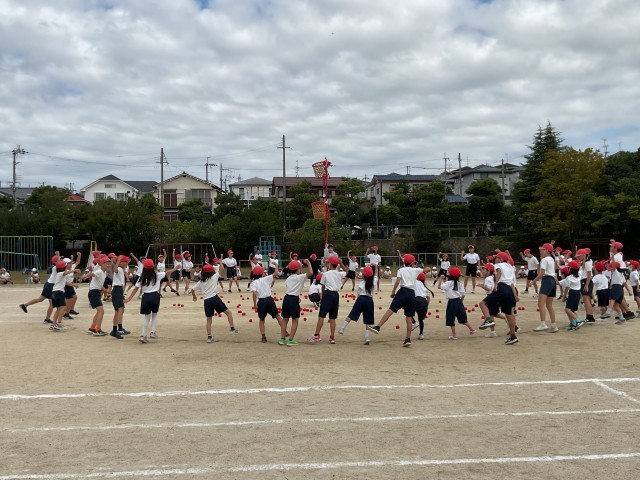22日の運動会予備日は、残念ながら雨が降ってきてしまい団体競技(選択種目)は中止になってしまい大変残念でした。せっかく練習したので24日金曜日に児童と教職員で合同体育を行いました。この日は、通常の体育の位置付けで行いました。ご理解いただきますようお願い申し上げます。