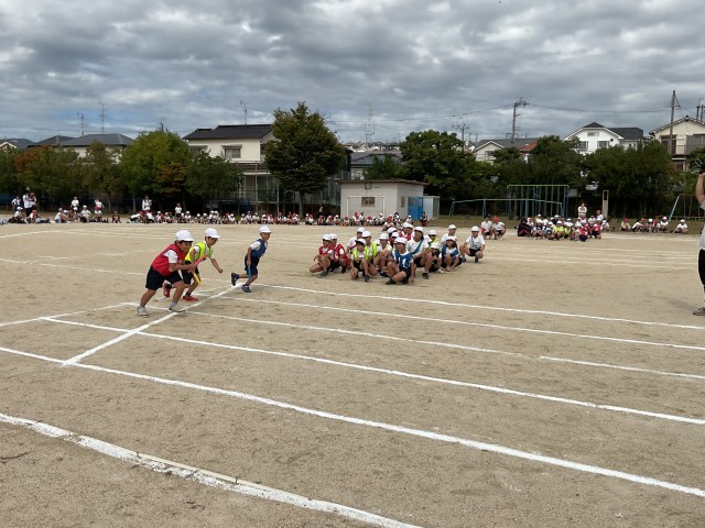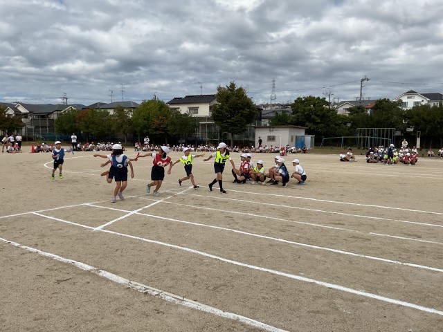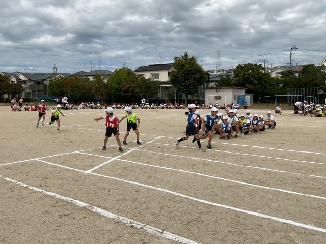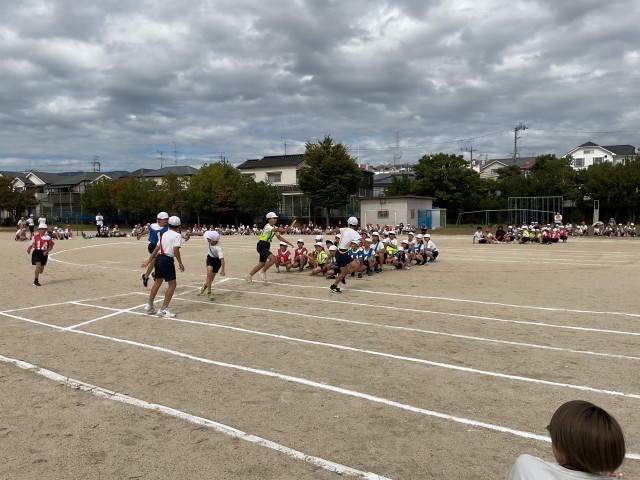 最後はたてわりリレーでした。バトンを繋ぐ時にタイミングが合わずに思わすバトンを落としてしまうシーンもありましたが、力いっぱい走り抜けた子どもたちの笑顔は最高でした。