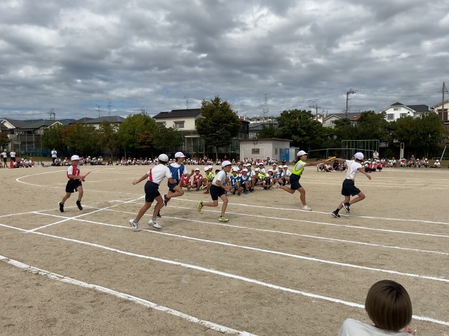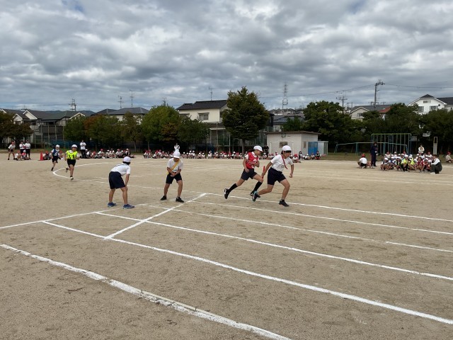 4年生は運動会の「走競技」リレーの練習を行なっています。