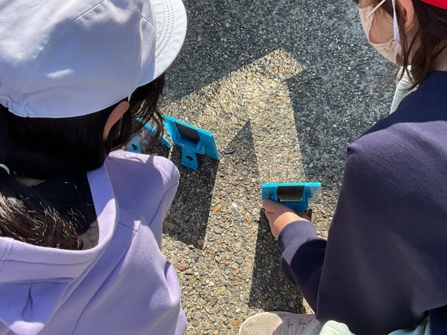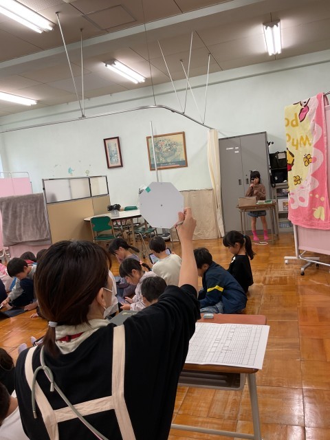 鏡を使って「光の性質」を学ぶ実験をしていました。光を反射させて的に当てたり、光を重ねて集めることで明るくなることに気がついたり、鏡の角度と反射する光の動きを観察するなど、体験をもとに学んでいました。