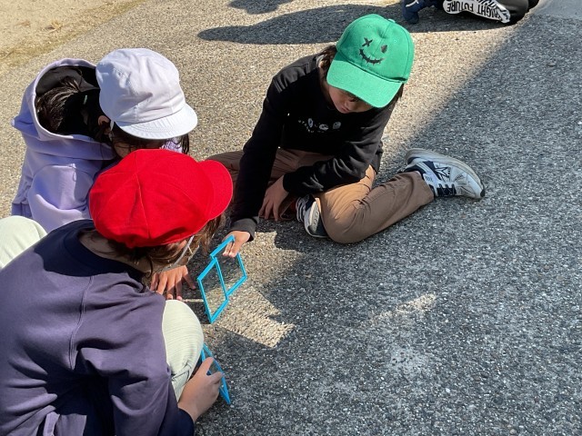 1年生の国語科「はっけんメモ」を書くために、秋の観察に外に出ました。一気に季節が進み、今日はとても肌寒いです。花・虫などの生き物・葉っぱなどの植物を、視覚・触覚・嗅覚・聴覚などをフル活用させて気がついたことが発見メモにかけるように観察していました。