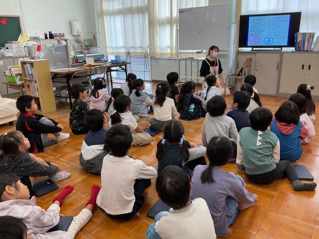 ひとクラス毎に順番に視力検査を行なっています。視力検査の前には養護教諭から保健指導として「心」と「身体」についてのお話しがありました。自分の心と体を大切にするために、心の動きと感情について児童に「こんな時もあるよね」「そんな時はどうしてる?」と語りかけながら、自分を大切にしてねとメッセージを込めてお話をしていました。(話の内容は、学年の発達段階に合わせて変えています)