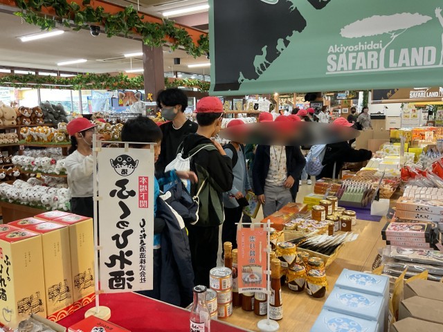 秋吉台サファリランドでお昼ご飯のカツカレーを食べました。たくさん活動をしたので、みんなとてもお腹が空いていたようで、写真に収める間もないくらいペロリと平らげていました。食べ終わった班から、最後のお土産購入タイムを楽しんでいました。