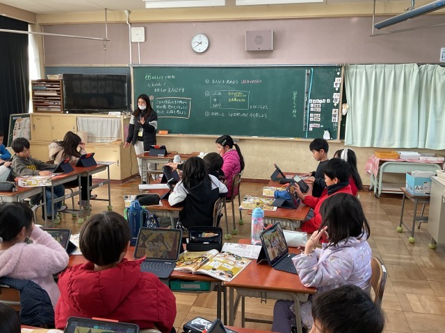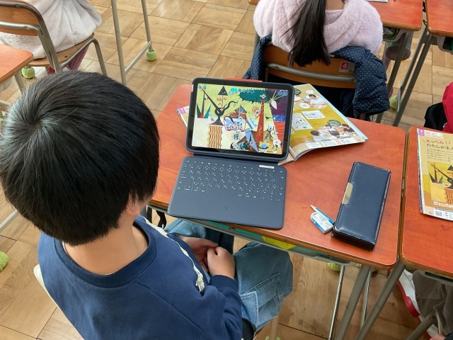 国語では、説明文「いろいろなふね」の学習に入りました。この日は、音読をしながら、文章全体を把握して読み、どんな船がどの順番で出てくるのかみんなで確認をしていました。これまで物語文「サラダでげんき」の学習では、誰がどんなことをしたのか確かめながら読み進めました。そこで身につけた力もいかして、次は説明文「いろいろなふね」では船にはどんな仕組みや役目があるのか考えながら学習していきます。
