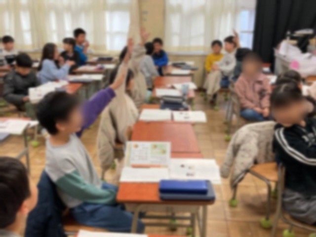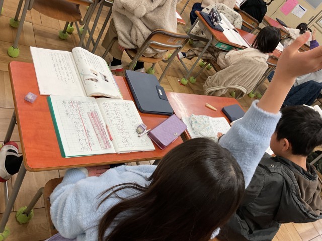 2年生では「かさこじぞう」の単元に入っています。音読では昔話の世界に浸りながら順番に音読をしていました。友達の音読の工夫を感じながら、静かに耳を傾けて聞いている集中力が素敵でした。これから昔話の「良さ」や「面白さ」を見つけながら、仲間と先生と共に学んでいきます。