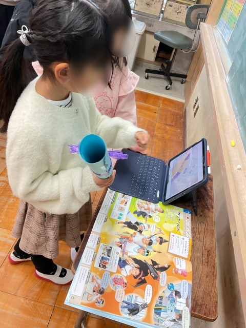 今日の6時間目は割と暖かく、外でも過ごしやすい気候でした。運動場では、4年生が高跳びの練習をしていました。タブレットで動画撮影をし合っていました。撮影した動画を自分で見返して、姿勢や足の角度を確認したり、友達にアドバイスをもらう姿が見られました。