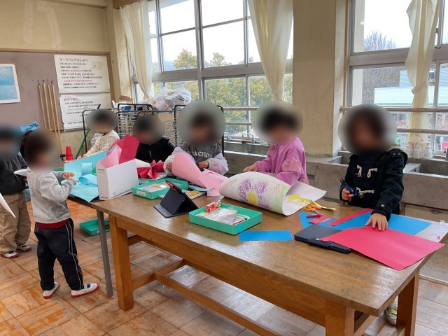学校に帰り、ダイコロさんで頂いたお土産の記念写真を受け取り、嬉しそうに友だちと見合っている様子です。