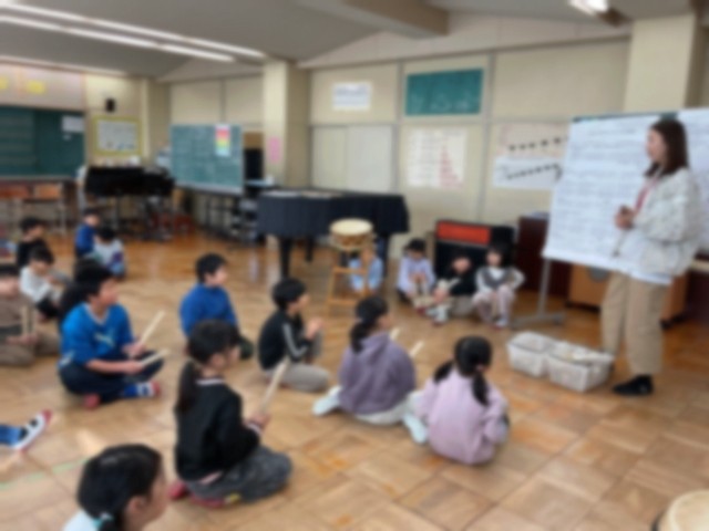 4年生は、2月の授業参観で1年間の音楽科の授業の成果として、歌や合奏を発表の予定をしています。専科の先生と学年の先生と一緒に参観で十分に子どもたちの良さが発揮できるように練習していました。