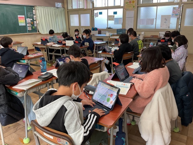 児童が下校した後も、先生たちは授業について学び合っています。個別最適な学びと協働的な学びについて、どのようにすれば本校の児童が主体的に学ぶことができるか研究を重ねています。冬休み中も3学期に向けて授業について準備するために、授業について話し合っていました。
