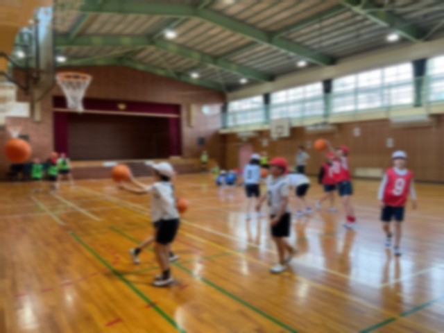 5年生はゴール型ゲームとして、バスケットボールの基礎的な動きについてみんなで学び合っていました。4人くらいの少人数で取り組むことで、どの児童もできるだけたくさんボールを扱えるように工夫されており、しっかり運動量も確保できていました。うまくパス回しができるように、チームで話し合う姿も見られ、得意な児童はもちろん、ボールの扱いにまだ不慣れな児童も共に学び合うことができていました。