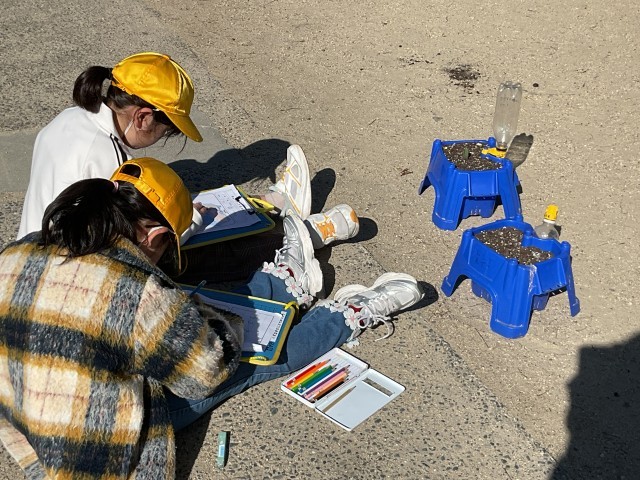 1年生の生活科では、植えたチューリップの球根の観察を行っていました。1年生の春にはアサガオやフーセンカズラなどの「種」を植えて秋まで観察してきました。「種」を植えた経験を持って、今は「球根」で植えたチューリップを観察しているところです。立春を過ぎ、日差しが暖かくなってきてチューリップの芽が6cmほど伸びてきています。