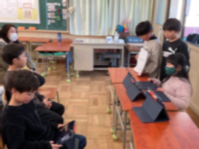 4年生は総合的な学習の時間に「福祉」について探求学習を行っています。アイマスクと白杖での体験活動をはじめ、街や学校内のバリアフリーについて調べたり、誰もが住みやすい社会の実現に向けた障害者福祉について探求活動を行っています。この日は、本校の卒業生でもあり現在枚方支援学校に在学している生徒さんとその保護者さまに来校いただきお話をしていただきました。質問ではたくさんの児童が手を挙げて質問をしていました。また、休み時間には、持ってきていただいたツールの体験や触れ合う時間を持つことができました。