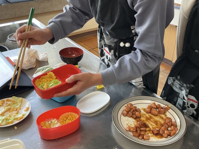 今日の家庭科では、「お弁当のおかず作り」に挑戦しました。それぞれの班で相談してレシピを調べたりしながら計画したお弁当のおかず作りです。小学校を卒業したら毎日食べていた給食ともお別れです。中学校に入ったらお弁当を持って行く子もいるでしょう。今日の経験を生かして、これからは自分でおかずを作ってお弁当が作れるようになることでしょう。