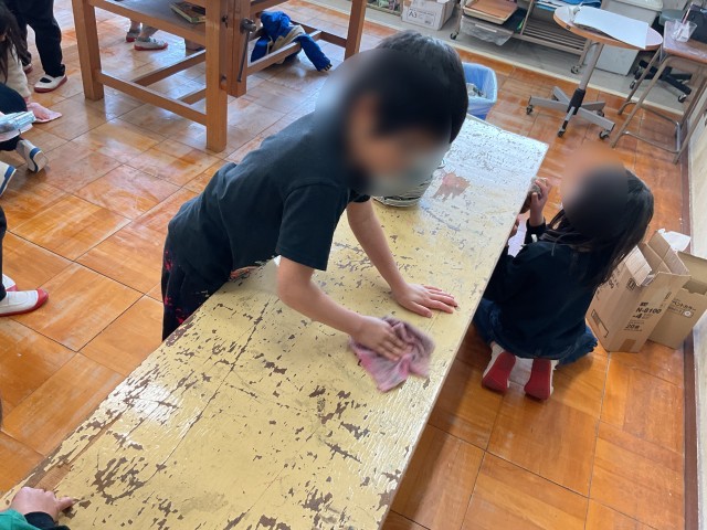 4年生の委員会活動では、環境・掲示委員会として活動しています。この日は学校中を手分けして、清掃活動を行なっていました。