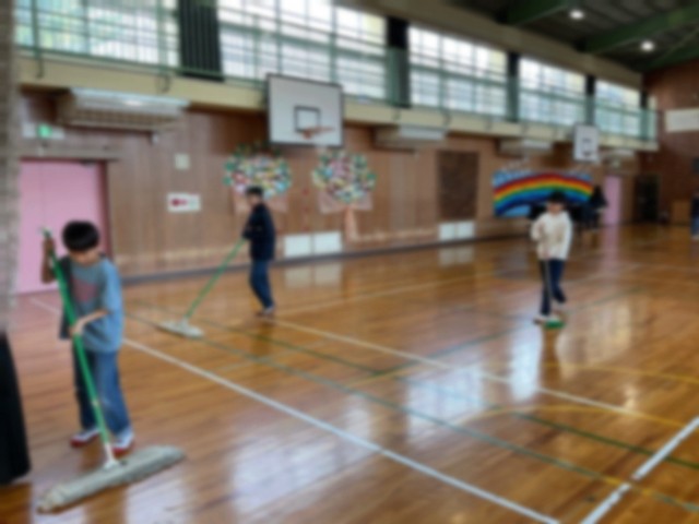 明日の卒業式を終えると、いよいよ5年生が最高学年です。その自覚を胸に、前日準備として掃除と準備を頑張っていた5年生でした。