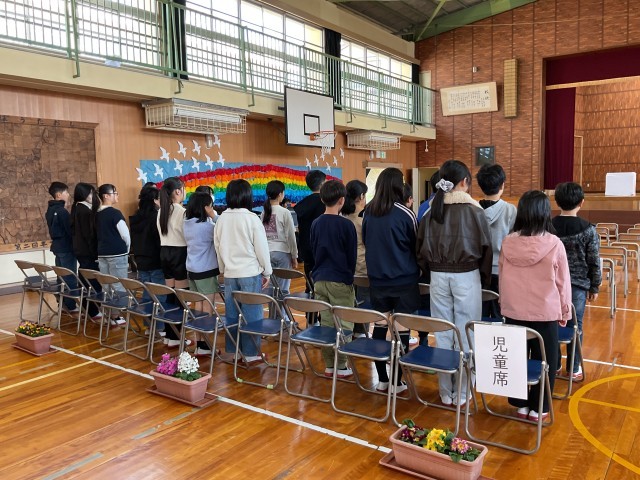 3月24日 修了式を行いました。1年間の歩みを「あゆみ」で感じ取ってもらいたいと思います。1人ひとりが成長した1年間でしたね。4月からは一つ学年が上がり、また新たなスタートを切ります。春休みにしっかり整え、新年度を迎えてください。