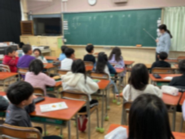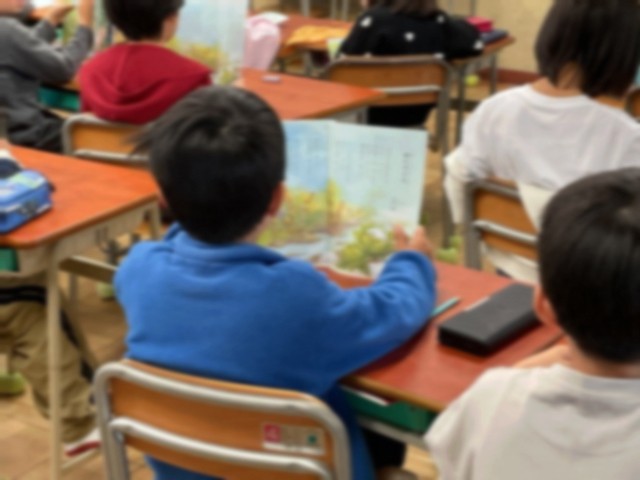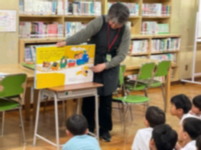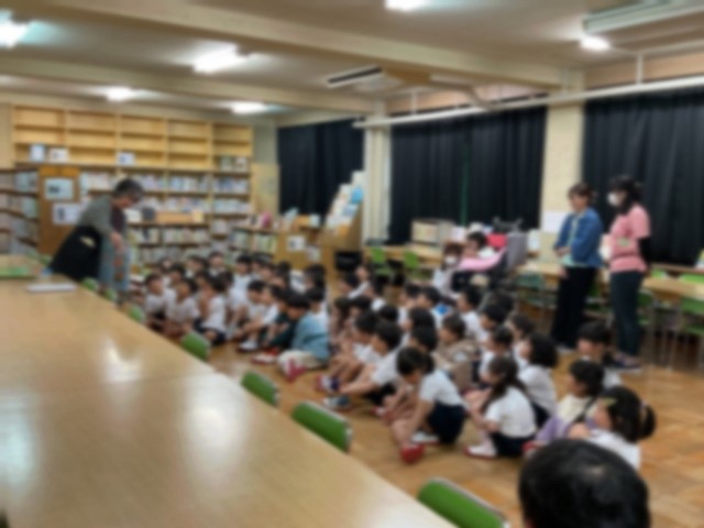 図書の時間に学校司書さんに読み聞かせをしてもらっていました。今年から小学校には隔週で学校司書が配置され、様々なところで読書活動の推進ができました。司書さんによる読み聞かせもその取り組みの一環です。子どもたちは本を読んでもらうのをとても楽しみにしています。この日は教科書に出てくる「お手紙」の作者アーノルド・ローベルの他の作品を読んでもらっていました。がまくんとかえるくんの他のストーリーに興味津々。読み終わると「もっと他のも読んで」という子や「その本かして」と本を手に取る子など、作家多読よみにつながっていました。