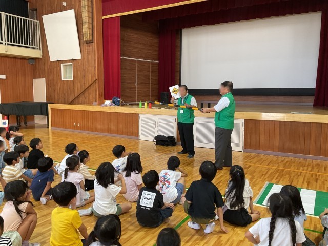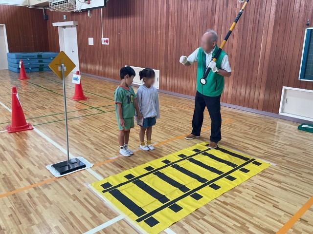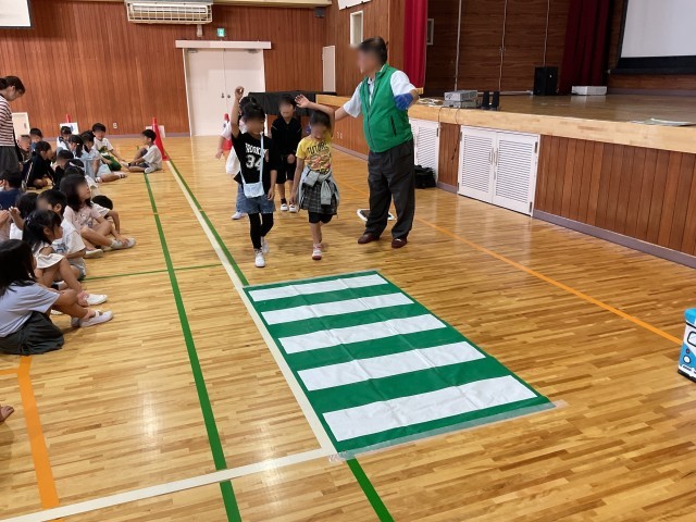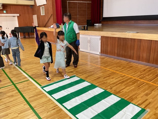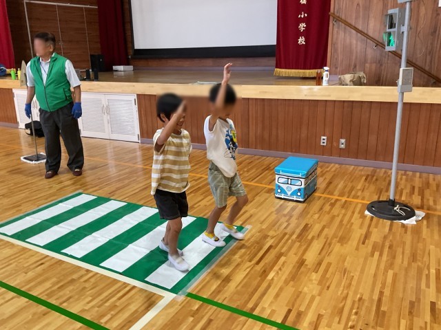 本日2時間目、体育館で1年生の歩行交通安全教室を行いました。枚方交野交通安全協会の方に講師として来校いただき、1年生に道路の交通ルールについて教えていただきました。2時間目が始まるまでには、体育館に信号機や横断歩道が出現していて、入ってきた1年生はびっくりしていました。今日お勉強したことはしっかり覚えておいて、交通事故に遭わないようにしてほしいと思います。