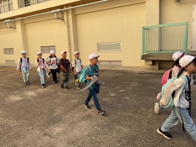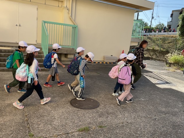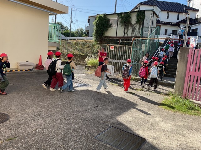本日晴天の元、2年生が秋の校外学習に出かけました。1組と2組が混ざってバスに乗って行きます。「いってきま〜す!」と元気に出発しました。保護者の皆さま、朝早くからお弁当の準備等ありがとうございました。