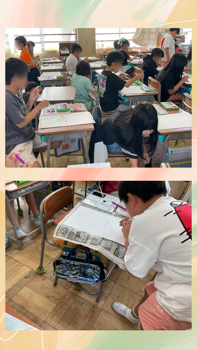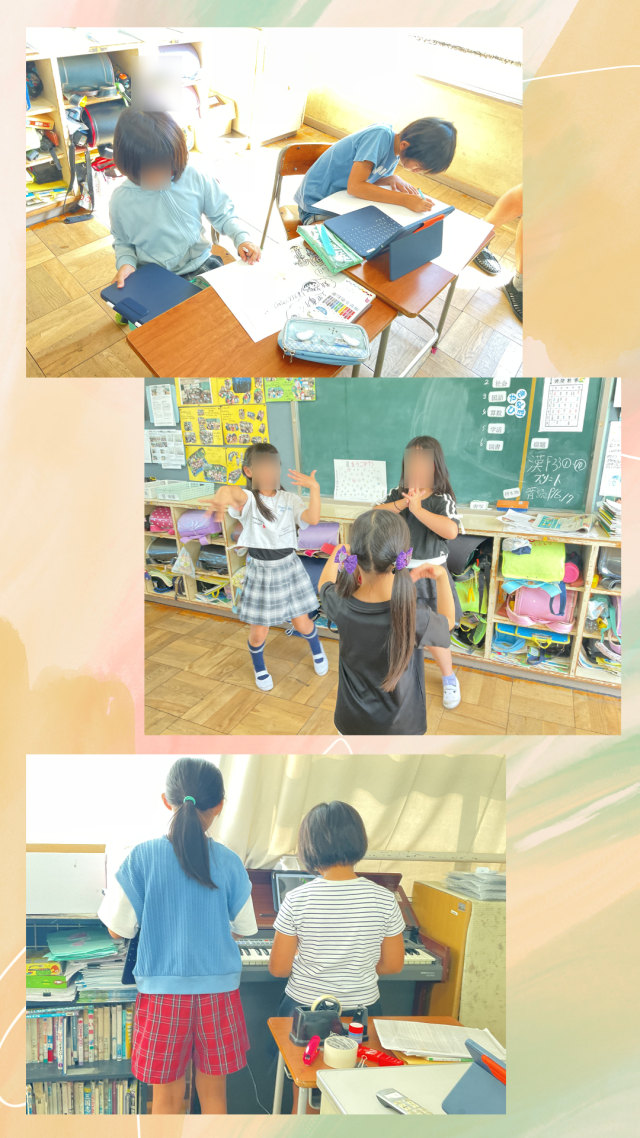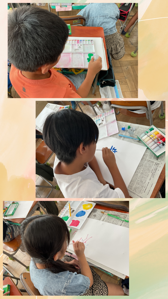本日5時間目、3年1組は図工の授業、3年2組は係活動をしていました。図工の授業では「ふき流しを使って表現を楽しもう」をめあてに、ストローで息を吹きかけながら色を伸ばしていました。2組はとても楽しんで係活動をしていました。