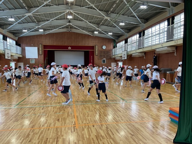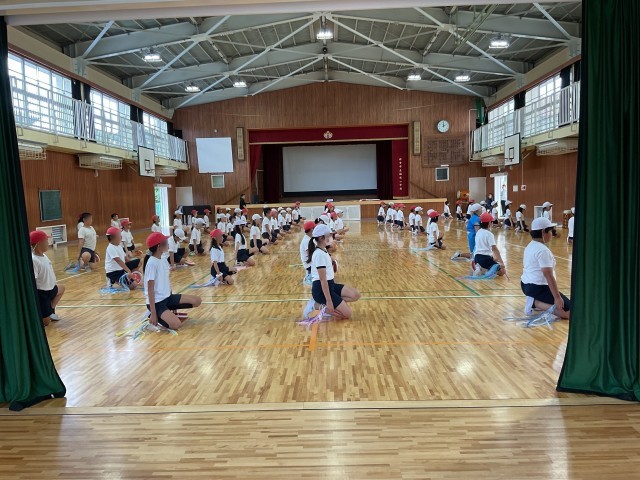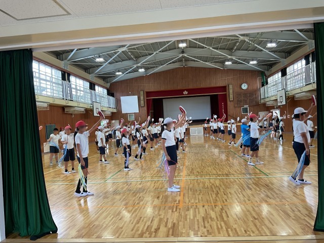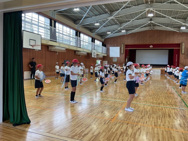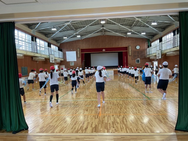 本日5時間目、5年生が体育館で運動会の練習をしていました。小道具の太鼓もほとんど完成し、ダンスの方も完成に近づいています。みんなが揃うときっと素晴らしいでしょうね。楽しみです。