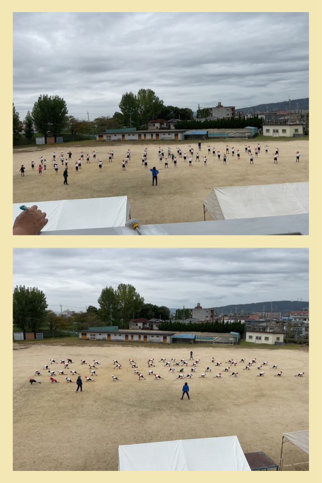 本日3時間目は2年生が運動場で、4時間目は1年生が体育館で運動会の練習をしていました。児童の皆さんは日々上達し、他の人とも揃うようになってきて見ていても楽しいです。