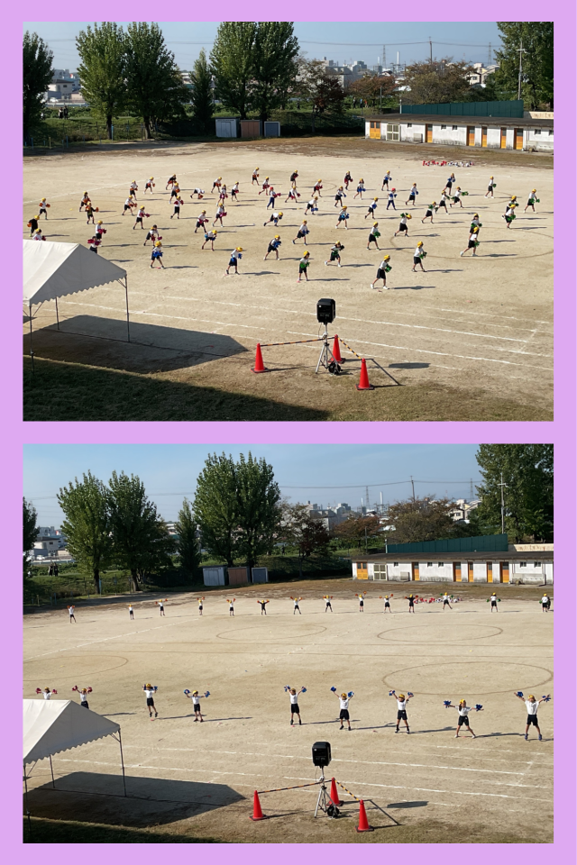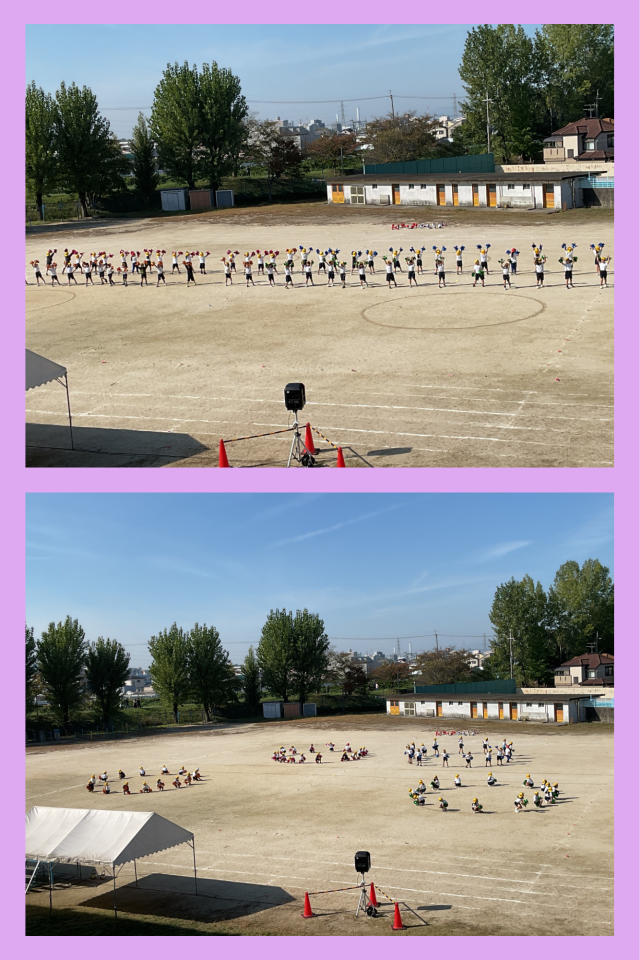 本日2時間目、運動場では1年生が練習していました。1年生の皆さんは動きも覚えて、団体演技は完成しているようです。保護者の方に見ていただくのが楽しみです。