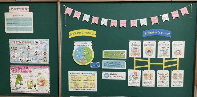 全国的にインフルエンザが流行しています。保健室前の掲示板には、養護教諭の先生が掲示物で注意喚起してくれています。みんなで感染予防・感染対策に取り組みましょう。