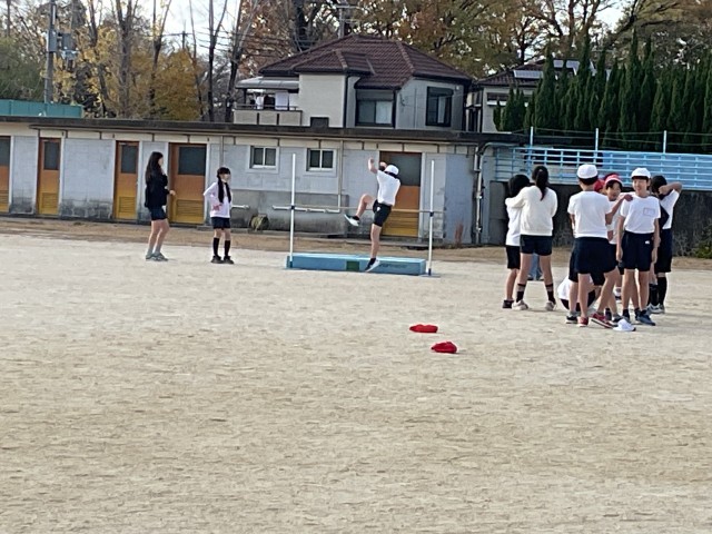 本日5・6時間目、6年2組は運動場で走り高跳びに挑戦していました。チャレンジする高さ別に分かれて何度もチャレンジしていました。先生も闘争心に火がつき、子どもたちに混じってチャレンジしていました。皆さん楽しく前向きに取り組んでいました。