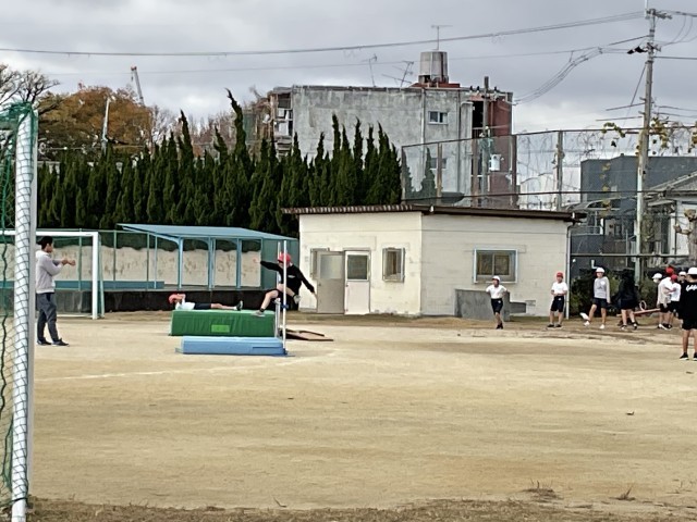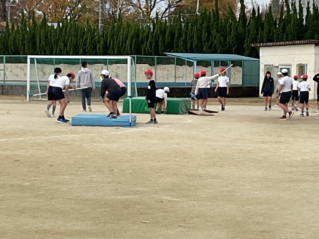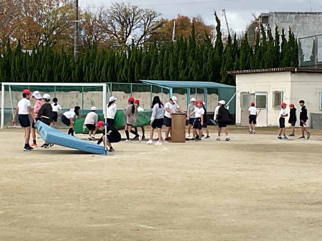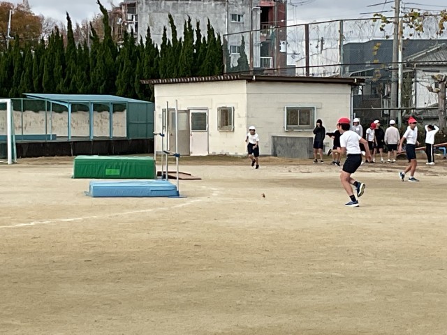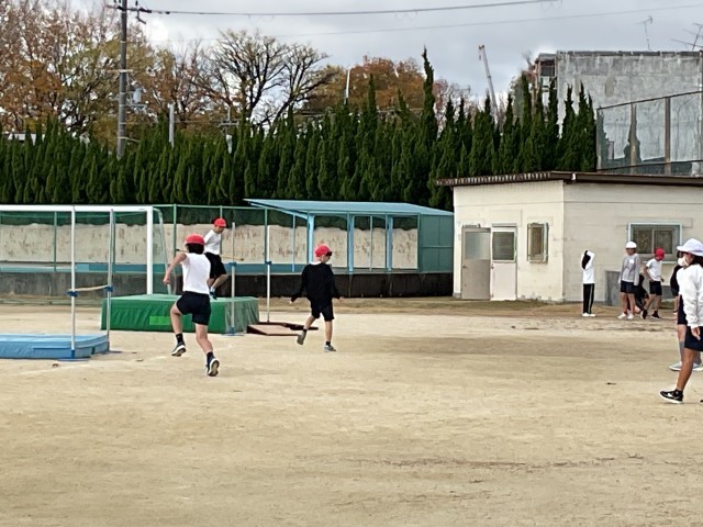 本日2時間目、6年3組は運動場で走り高跳びに挑戦していました。チャレンジする高さ別に分かれて何度もチャレンジしていました。終了の声が掛かると、皆が一斉にお片付けを始めました。とてもテキパキと動けていました。