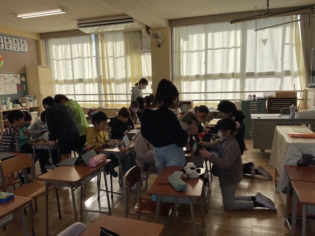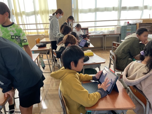 本日2時間目、5年2組は学級活動を行っていました。楽しそうに問題作りをしていました。教室の後ろには、これからやって来るクリスマスのポスターやら飾りつけがされていました。