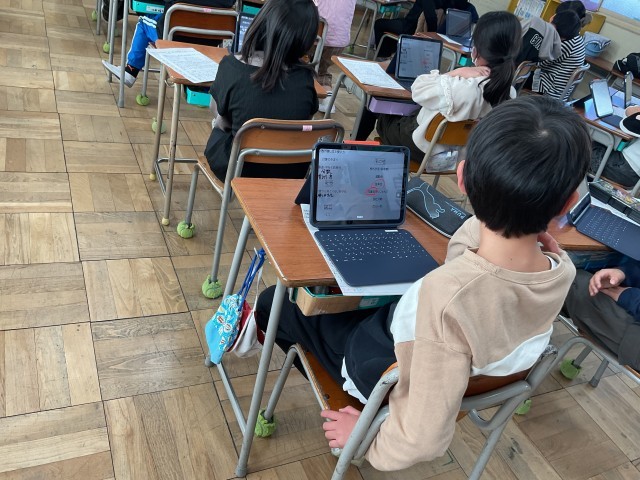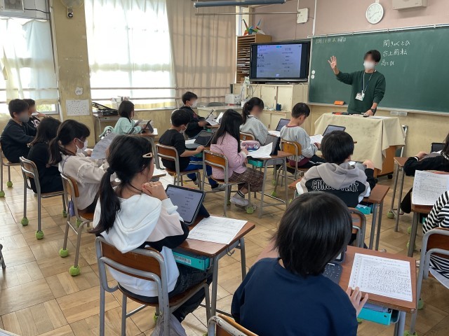 本日6時間目4年1組では3学期に向けて、1・2学期での学習や取り組みを振り返り、4年生で頑張ったことや成長したところを考えていました。これは3学期の参観で発表するための準備も兼ねているようです。