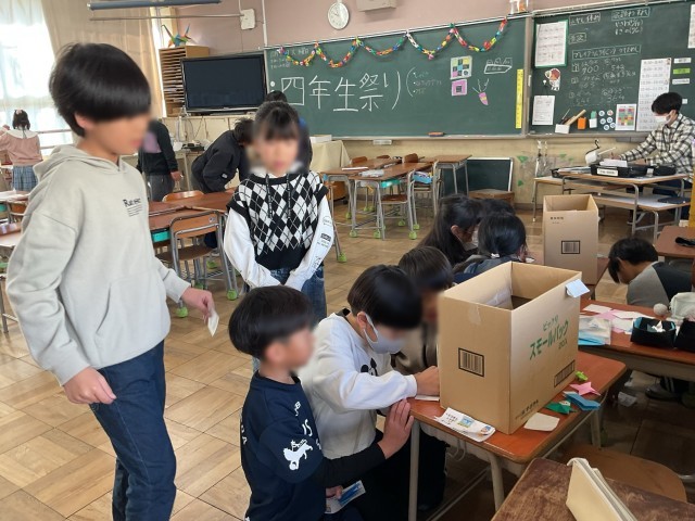 2学期の終業式を明日に控え、今日はたくさんの学年・クラスでお楽しみ会が開催されていました。4年生では学年のお祭りが開催されていました。