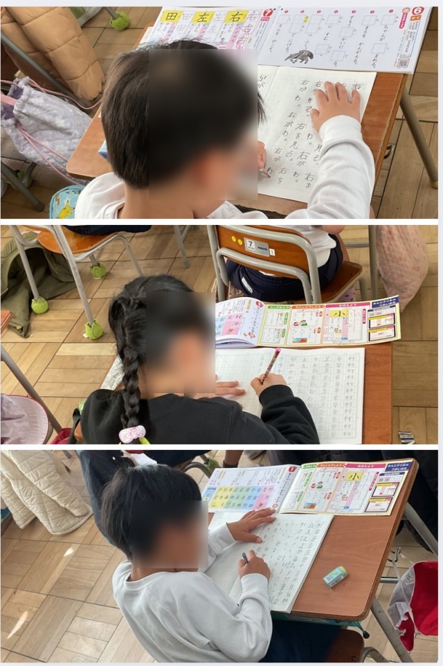 本日3時間目、1年1組では2月の参観に向けての取り組みを行っていました。児童の皆さんは先生の言うことをよく聞いて、自分のセリフや全員での歌を大きな声で練習していました。1年2組では国語の授業で、漢字の練習を懸命に頑張っていました。とても落ち着いて学習できていました。
