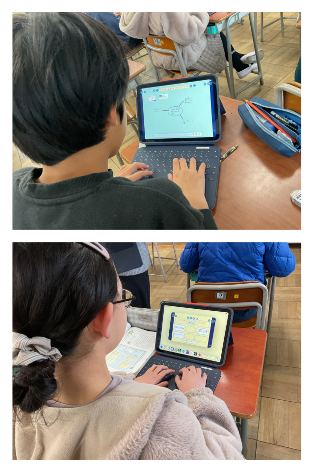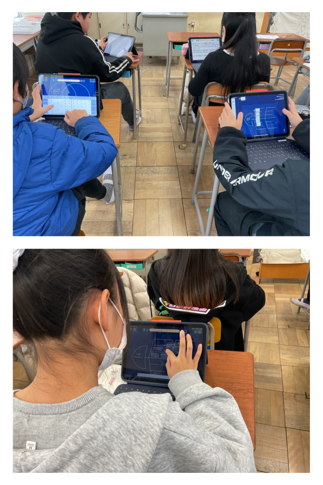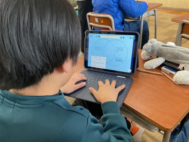 本日3時間目、5年2組は国語の授業で「どこでもドアとタイムマシンは必要か?」という課題について考えていました。ロイロノートの様々なシンキングツールの中から、自分の思考に合いそうなものを選択して使用していました。最終的に必要か必要でないかで討論するそうです。面白そうですね。児童の皆さんはタブレットを上手に利用していました。5年1組では家庭科の授業で五大栄養素について図を見ながらプリントにまとめていました。皆さん集中して取り組んでいました。