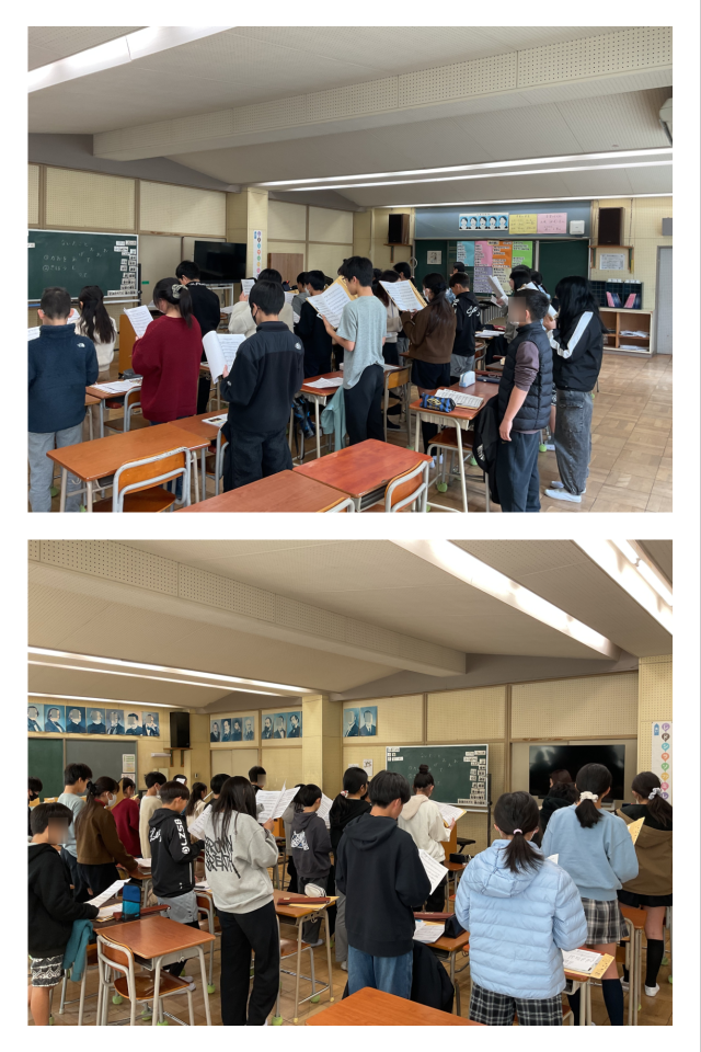 本日3時間目、音楽室では6年1組の皆さんが歌の練習をしていました。「しあわせになあれ」という題名の歌で、卒業式に歌う歌のようです。