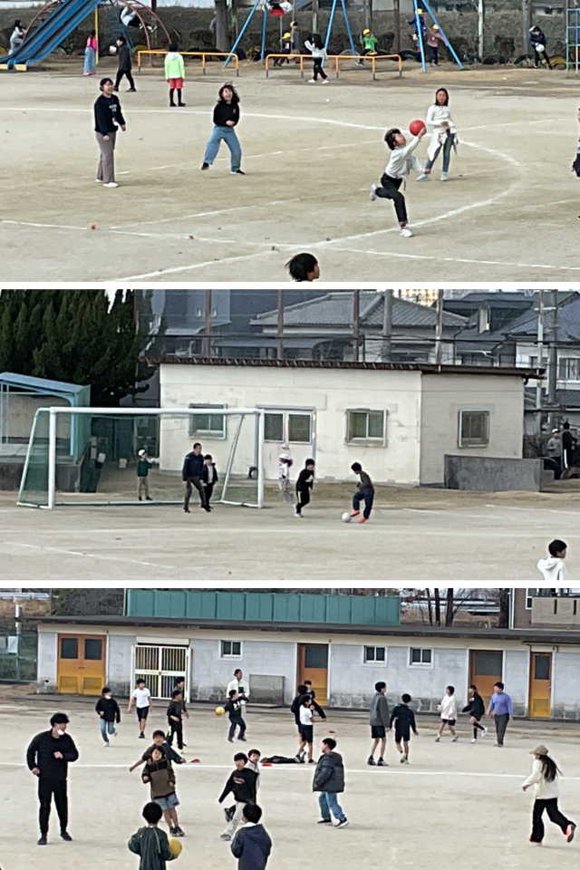 本日の中休みとお昼休みの様子です。天気が良かったので、皆さんとっても元気よく外遊びを楽しんでいました。たくさんの担任の先生方も、子どもたちと一緒に身体を動かしていました。