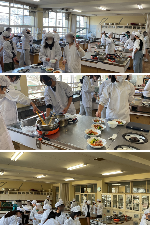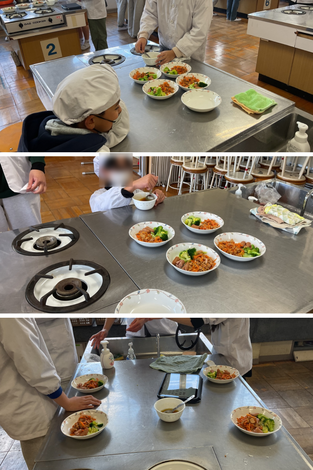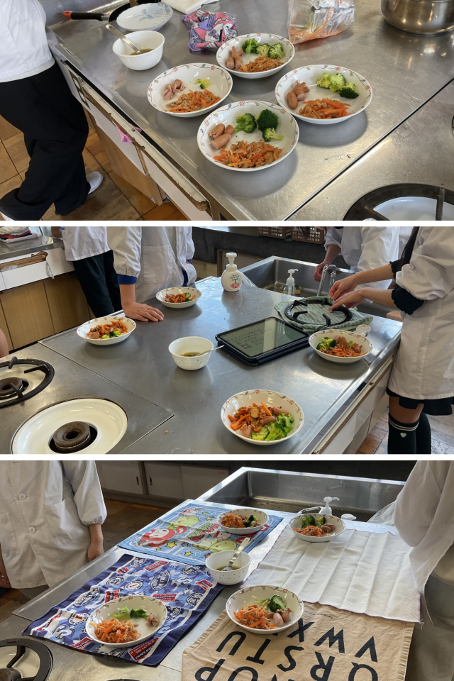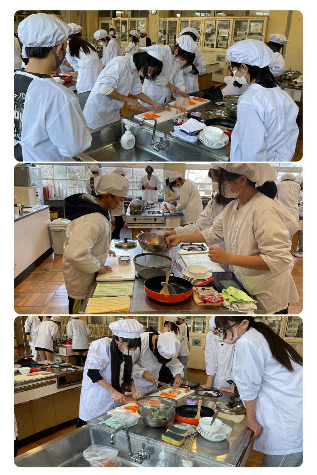 本日3・4時間目、6年2組が調理実習でにんじんしりしりを作っていました。各グループ和気あいあいと、分担しながら楽しそうに調理していました。出来上がりもバッチリ美味しそうでした。