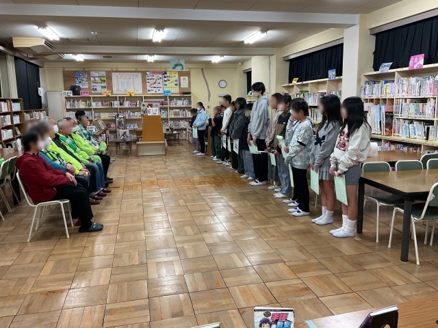 今朝の児童集会で予定されていた「ふなっこパトロール感謝の会」は、学級閉鎖のクラスが複数あるため児童会委員だけで図書室で行いました。