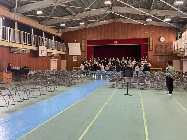 本日2時間目、体育館では6年生が卒業式に向けて歌の練習に励んでいました。担任の先生の見守る中、音楽の先生の指導でどんどん声が綺麗に出るようになっていきます。しっかり練習して、本番では立派な姿を見せてくださいね。