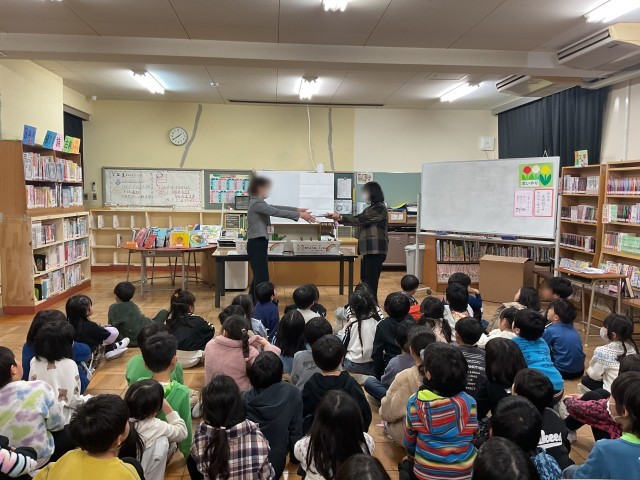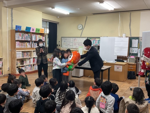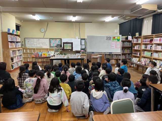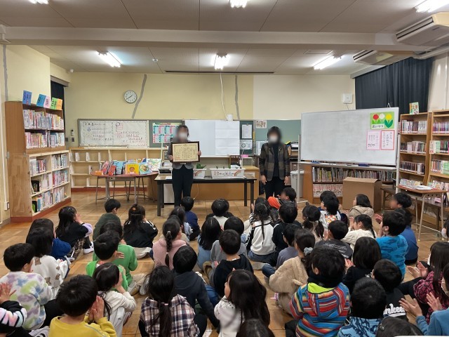 本日5時間目、「人権の花」運動でお世話になっている人権擁護委員の先生方が来校され、感謝状をいただきました。1年間の取り組みに対し、感謝状と共に置き人形もいただき児童の皆さんは大喜びでした。贈呈式の後は、先生方が紙芝居をしてくださり皆で楽しみました。取り組んだチューリップの球根には可愛い葉っぱが顔を出しています。人権の取り組みで学んだ思いやりの気持ちを持って、これからも楽しくすごして欲しいと思います。