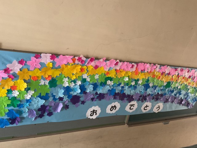 本日2〜3時間目、卒業式の予行を行いました。本番さながらの緊張感で、5年生も6年生も良く仕上がっていました。感動的な卒業式になりそうです。また、校内のあちこちにも卒業のお祝いムードが漂っています。保健室の前には5年生の保健委員の皆さんから6年生へ向けてのお祝いのメッセージが飾られています。
