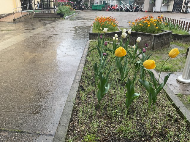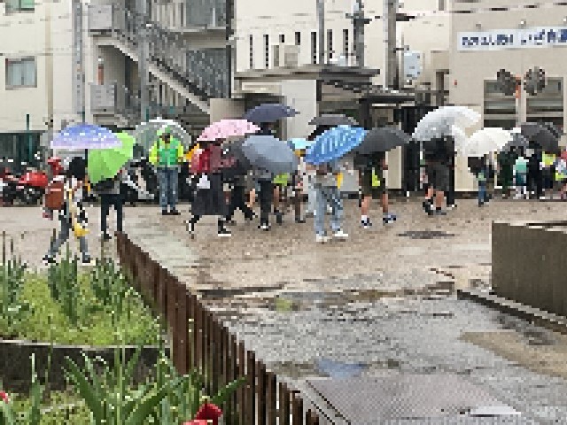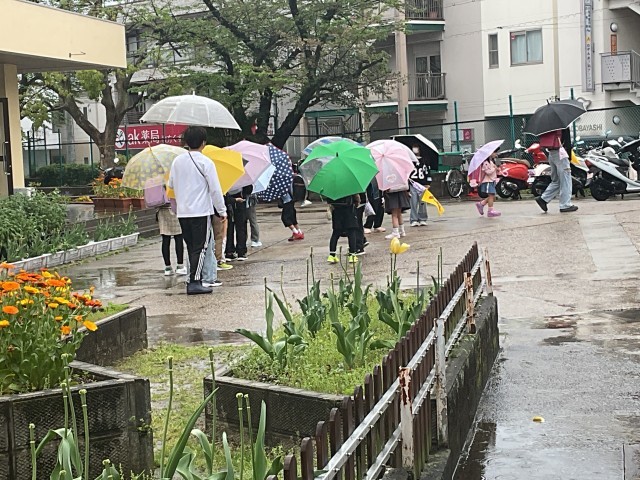 雨が降りしきる中、班長さんを中心に集団下校が行われました。