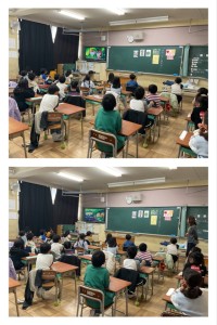 下 児童が作成した「本の紹介カード」を2階わたり廊下に