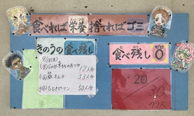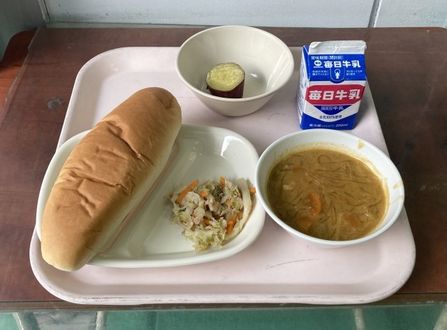 今日はふかしいもが出ました。年に一度のメニューです。実は、均等に切って人数分、提供するために、調理員さんたちは前日からさつまいもの大きさでグループ分けをし、それぞれのグループの大きさに応じて三等分・四等分して調理をしてくれています。1000人分以上のさつまいもを切ることを考えると、大変な作業です。今日はそのことを思いながら、しっかりと噛み締めていただきました。