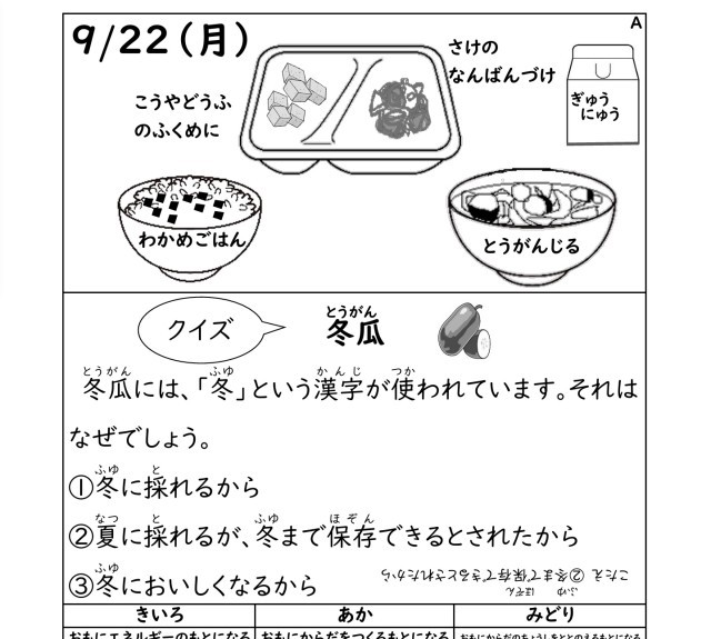 今日の給食/9月22日の給食