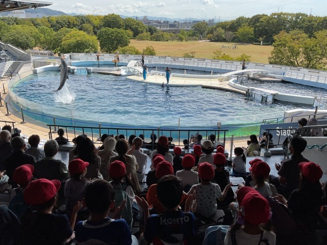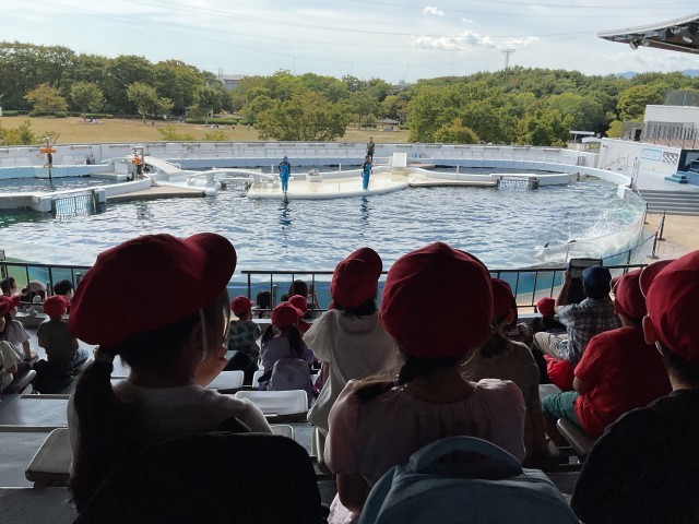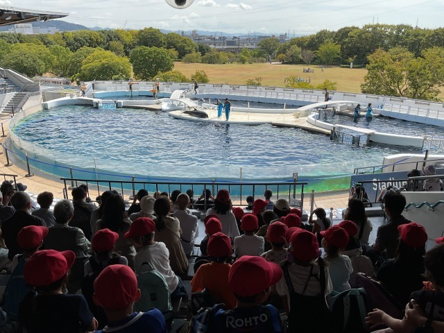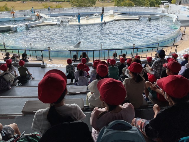 今日の目玉のイルカショーです。今日はイルカの音楽の授業でした。インストラクターの指示に従って、歌を歌ってくれました。