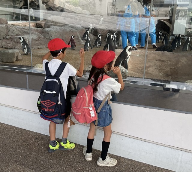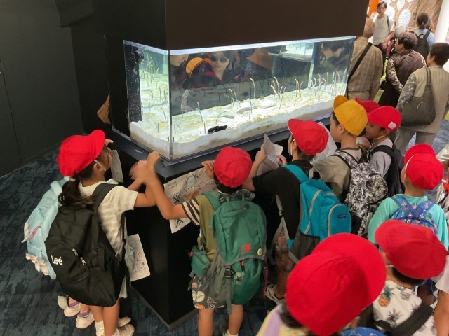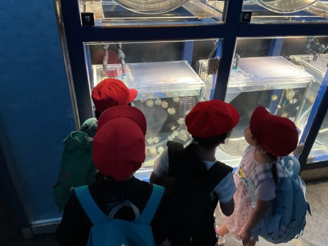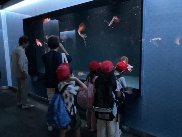 水族館内の子どもたちの様子です。クラゲやチンアナゴが人気でした。